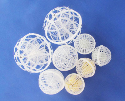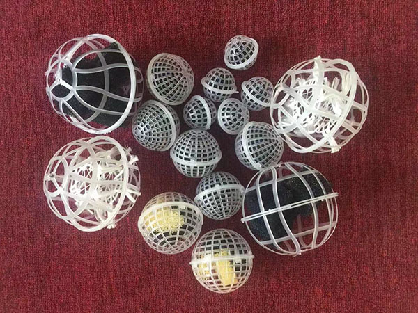 該填料系列由聚丙烯材料注塑而成,分內外雙層球體,外部為中空魚網狀球體,內部為旋轉球體。主要起生物膜載體的作用,同時兼有截留懸浮物的作用。該產品具有生物附著力強、比表面積大、孔隙率高、化學和生物穩定性好、經久耐用、不溶出有害物、不引起二次污染、防紫外線、抗老化、親水性能強等特點。在使用過程中,微生物易生成、易更換、耐酸堿、抗老化、不受水流影響、使用壽命長,剩余污泥少,安裝方便。