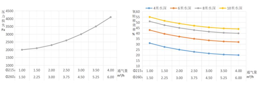 | 規(guī)格 | 外徑 (mm) | 膜片直徑 (mm) | 通氣量 (m3/h) | 標(biāo)準(zhǔn)通氣量 (m3/h) | 服務(wù)面積 (m2) | 氧轉(zhuǎn)移效率 (%) | 接口(螺紋外絲) |