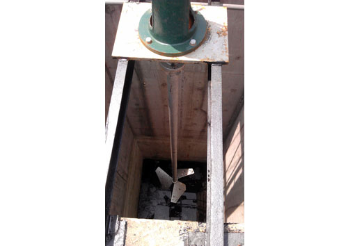 攪拌機葉輪下部槳葉在澄清池一反應室完成機械反應,使經加藥混合后所產生微絮體與回流泥渣中的原有礬花再度碰撞吸咐,形成較大絮粒,然后由葉輪提升到二反應室,再經折流到澄清區進行分離,清水上升由集水管引出,泥渣在澄清區下部回流到一反應室,由刮泥機刮集通過池底泥閥控制排出,達到原水澄清分離的效果。